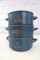 Marynistyczne wzory - Nasze bulionówki w marynistycznych wzorach są ozdobione motywami charakterystycznymi dla żeglarskiego stylu, takimi jak paski, kompas, morze czy żagle. Wzory te nadają naczyniom niepowtarzalny wygląd, który doskonale wpisuje się w żeglarski klimat. Idealne do podawania zupy czy innych gorących napojów na jachcie podczas rejsów czy spotkań z załogą.