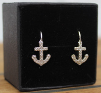 KOLCZYKI PLASTIKOWE BROKATOWE SREBRNE WISZĄCE KOTWICA Z KRYSZTAŁKAMI