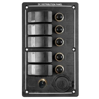 PANEL ELEKTRYCZNY WODOSZCZELNY IP68, 12/24V, 5 ROCKER SWITCH ON-OFF, GNIAZDO ZAPALNICZKI