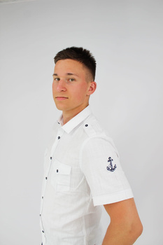 KOSZULA MĘSKA KRÓTKI RĘKAW PAGONY KOTWICA O27489 BIAŁA